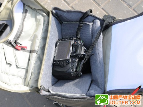 当我们在体验快捷拿取的时候,发现了常用机身和镜头的放置位置,如果将主包全面打开,就会出现更多的存储空间。