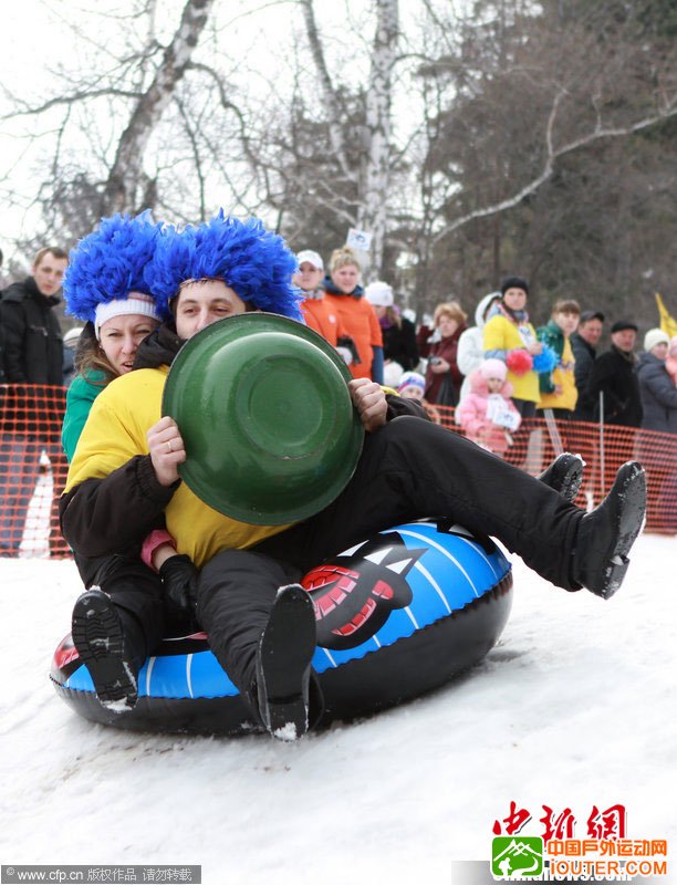 高清:俄罗斯洗脸盆滑雪比赛妙趣横生(组图)