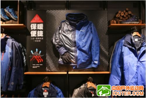 店内还有很多充满户外感的元素,设计师希望把室外带到室内:收银台的背面一条一条的蓝色木条,灵感是来自瀑布;试鞋凳以户外绳子编织而成;每个试衣间都有不同的场景, 有些是滑雪, 里面的椅子就是滑雪缆车, 森林主题的试衣间, 就配木桩。店内还有一道互动墙, 定期会把不同的品牌户外活动照片与消费者分享。成立于俄勒冈州波特兰市的Columbia是一个历史悠久而且是一个真正户外的品牌. 创办人Gert Boyle从1938年建立这个品牌, 过去78年, Columbia 致力研发自己的科技. 到今天, 一共4大类科技, 包括保暖, 降温, 防水和保护, 总共有20个科技, 为喜欢户外人士提供更好的保护, 可以更长时间享受户外。