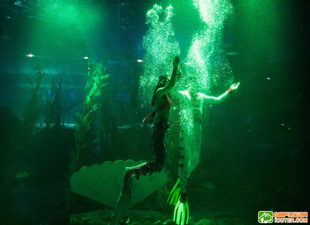 在海洋剧场,她们观看了“梦幻美人鱼”表演。柔美的音乐,高科技投影技术和水下真人表演虚实结合,完美地呈现了美人鱼公主和王子的浪漫爱情故事。青岛帅哥和美人鱼姐妹被这浪漫故事情节深深打动,表演结束了还久久沉浸在美好回味中忘记起身。