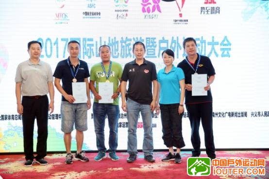 在东南形胜的万峰林上空,竞赛组选手经过2日4场的角逐,圆满完成各项竞赛科目。18日颁奖晚宴上,全体飞行员、到场嘉宾和观众共同见证荣耀时刻。获得“2017国际山地旅游暨户外运动大会中国热气球俱乐部联赛贵州·兴义站”第4名至第6名的俱乐部分别为云南腾冲火山航空运动俱乐部有限公司、南京宏光通用航空装备技术有限公司、诸城市热气球体育文化有限公司。襄阳宏伟航空器有限责任公司的徐坚以2838分列为季军,大同市云之翼航空俱乐部有限公司的陈保云以2999分斩获亚军,冠军宝座由郑州翱翔文化传播有限公司的李光辉以3050分夺得。