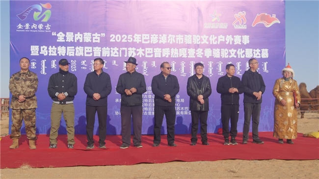 寒冬送暖,盛会启幕。近日,“全景内蒙古”2025年巴彦淖尔市骆驼文化户外赛事暨乌拉特后旗巴音前达门苏木巴音呼热嘎查冬季骆驼文化那达慕盛大启幕。活动以红驼为媒、以赛事为桥,将北疆文化的厚重底蕴与民族体育的蓬勃活力深度交融,奏响了一场兼具传统韵味与时代气息的文旅体育融合乐章。