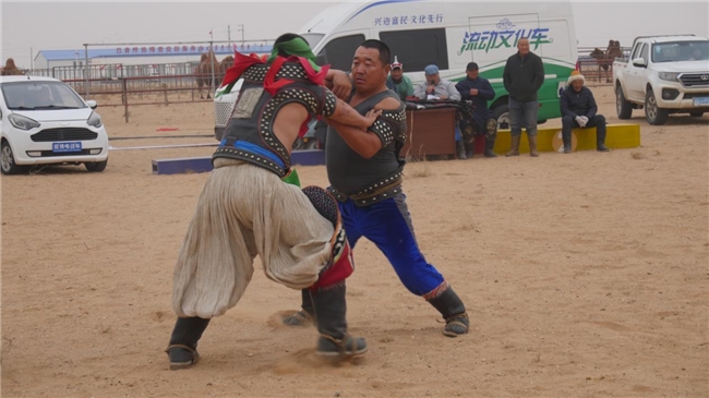 赛事环节亮点纷呈、异彩纷呈。驼类赛事涵盖10公里速度驼赛、4公里二岁骆驼赛等多个组别,驼球赛、驼门球赛、挤驼奶、骆驼选美等特色项目轮番上演,驼手与骆驼默契配合,在冰雪赛场之上将速度与技巧、力量与美感完美诠释。同步举办的哈日靶比赛、搏克比赛,尽显草原传统竞技的豪迈与灵动,让现场观众沉浸式感受北疆民族文化的独特魅力。