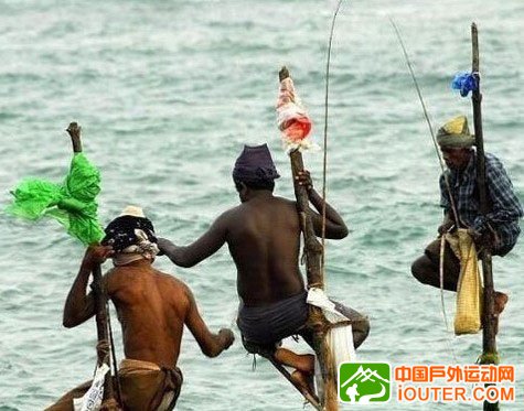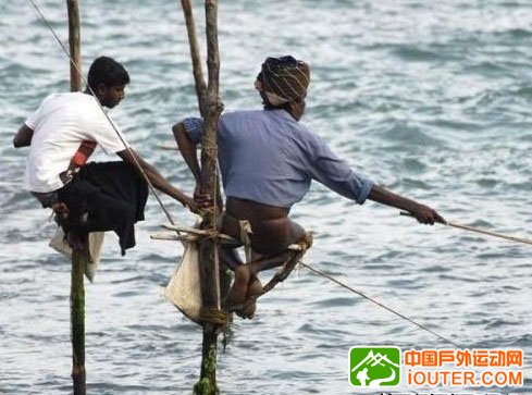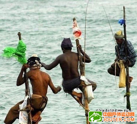 这是在斯里兰卡南部的海岸线上,近Koggala的小镇上,在傍晚四、五点时,会有渔夫站立在立竿上钓魚,真的是很特別的景观。 这个奇特的钓鱼姿势,可不是一时半会就能学会的。 真是令人匪夷所思,这样能更吸引鱼儿们上钩吗,还是顺便练习“轻功”