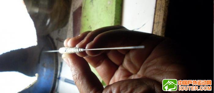 插入漂尾捆绑,调整脚尾同心度,其实这样做漂,脚尾基本同心,不需要费大力气调整,你试下就知道哦
