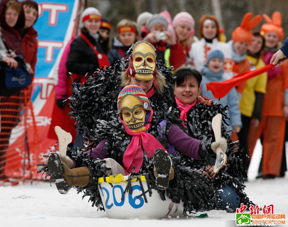 高清:俄罗斯洗脸盆滑雪比赛妙趣横生(组图)
