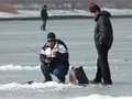 在拉拽回线过程中要特别留心不挂底锚钩的位置,然后重复往那里抛钩,以便把鱼群定位在那里,减少处理锚钩挂底的时间。如果远近都极易锚钩,不妨改用以手线为主。流子鱼,就用500克左右的铅砣,免去底钩,顺着船舷照直送下去,然后进行有节奏地上下抖动使饵活起来,上鱼的效果特别好。抛竿锚在那里暂时不动,待锚住的钩饵被鱼从礁石上啃下吞食后,再试着回线提鱼。