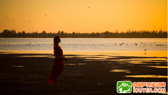 开车绕着七星湖走,沿途可以看到许许多多的沙丘,有的低矮平缓,有的高大险峻,但都充满了线条之美。夕阳西下,暖暖的阳光照射在沙丘上,异常美丽。待夕阳慢慢接近地平线,开车到鸟岛等一场日落。夕阳下的鸟岛湖面平滑如镜,许多的鸟儿在湖面上走来走去,构成了一幅生机勃勃的日落美景。