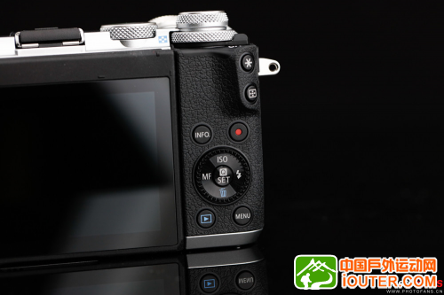 佳能微单M6的转盘设计非常有质感,金属材质的菱形切割边缘美观之余也增加了使用时的摩擦力,机身开关拨杆被设计在拇指处,方便在拍摄时单手也可进行各种操作。