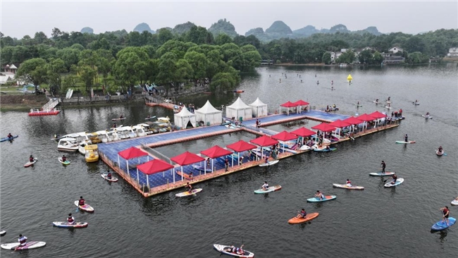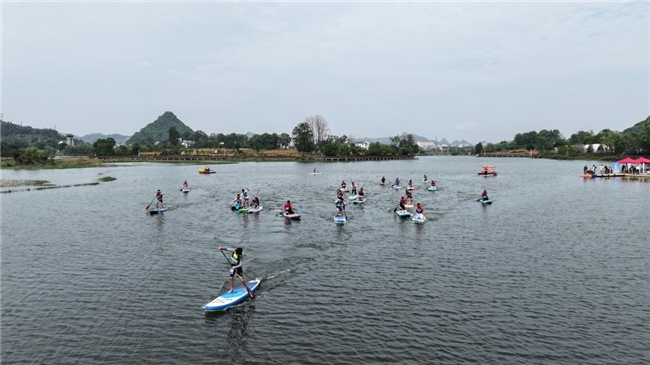 4月24至25日,“活力三岔河·桨板竞碧波”2026贵州贞丰桨板竞速公开赛在国家4A级旅游景区——贞丰县三岔河景区成功举办。本次比赛汇集了来自广西、广东、上海、河南等省内外的230余名桨板运动爱好者;三岔湖水域开阔平缓,四周峰峦叠翠、碧水环绕,得天独厚的自然条件为选手和观众带来了一场沉浸式的山水户外竞赛体验。