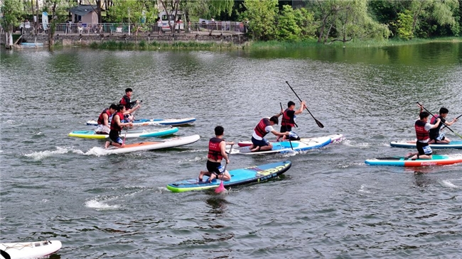 本次赛事共设置大众男子组、大众女子组800米竞速赛和1600米长距离赛两个项目,全面考验选手的爆发力、耐力与水上操控技巧。运动员们在三岔河水面上劈波逐浪,以桨板为媒、以山水为幕,展开了一场速度与激情的精彩对决。
